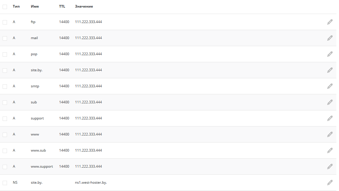 Здесь вы увидите все DNS-записи вашего веб-сайта.