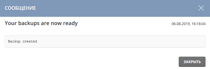 Снизу справа вы увидите сообщение о том, что создание вашего бэкапа поставлено в очередь, и как только он будет создан, вам придет уведомление.