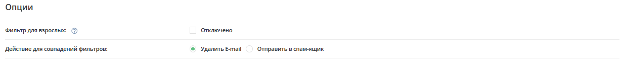 Так же вы можете выбрать, что делать с отфильтрованными письмами — удалять или отправлять в спам-ящик