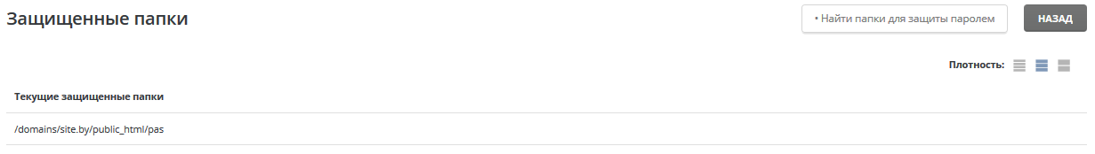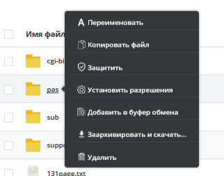 Если вы хотите установить защиту на папки, наведите мышкой на имя папки и в выпадающем меню выберите пункт «Защитить».