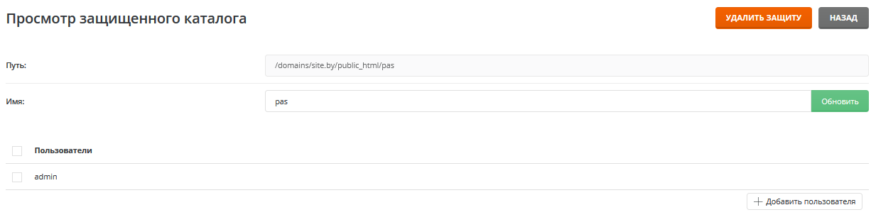 Так же здесь можно удалить защиту на папку, для этого нажмите на кнопку «Удалить защиту» в правой верхней части экрана.