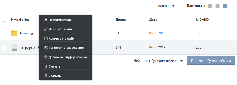 Наведя мышкой на название файла или папки, появится меню, в котором необходимо выбрать пункт «Переименовать».