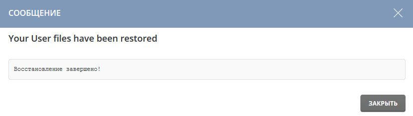 Если у вас есть файл резервной копии на жестком диске, вы должны загрузить его в каталог /backups. Это можно сделать через FTP-клиент или через менеджер файлов встроенный в панель управления (раздел «Система и файлы» — «Менеджер файлов»)